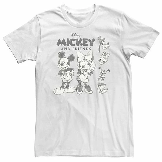 Celebrate Mickey Mouse and his friends with this men’s Disney t-shirt featuring sketched characters and graphics. ©Disney