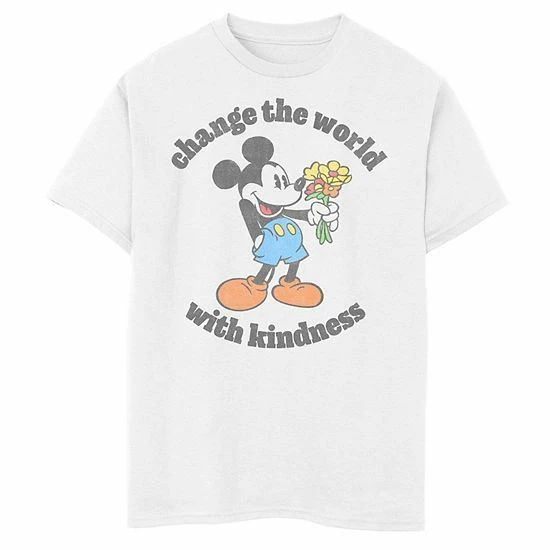 Refresh your little one’s casual wardrobe with this fun Boys 8-20 Disney Mickey With Flowers Change The World With Kindness Graphic Tee.