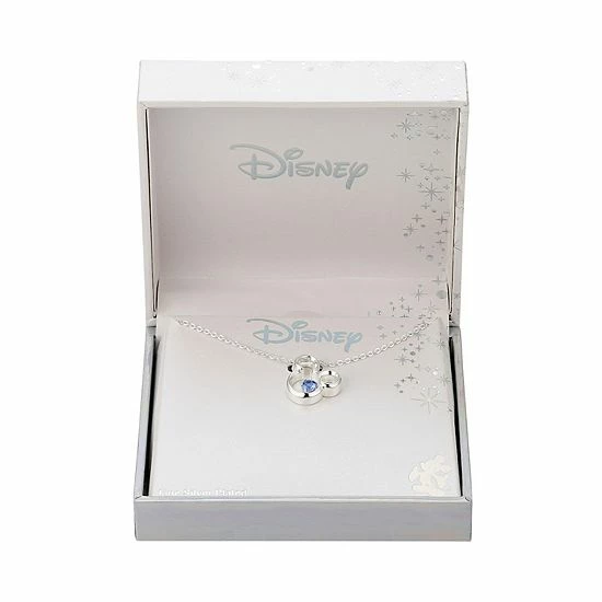 Finish off your look with a pop of color in this fine silver plated, crystal-studded Mickey Mouse pendant necklace. ©Disney