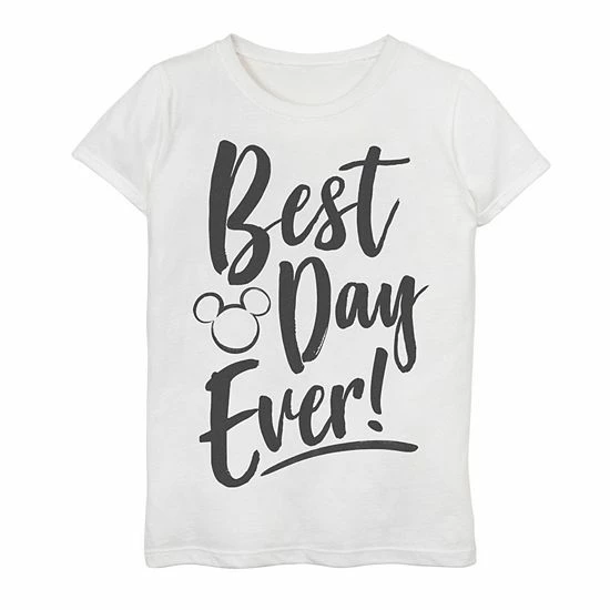 She’ll love the style of this Disney girls’ Park Best Day Every Mickey Head Silhouette Graphic Tee. © Disney