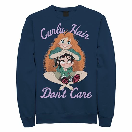 Show off your style with this Juniors’ Women’s Wreck It Ralph 2 merida curly hair don’t care crew fleece.