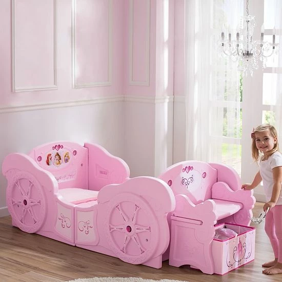Give your little princess a royal retreat at bedtime with this Disney Princess Carriage toddler-to-twin bed frame.