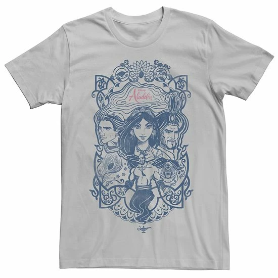 Featuring your favorite Disney’s Aladdin characters, you’ll love this men’s Jasmine, Aladdin, Jafar and The Genie graphic tee.