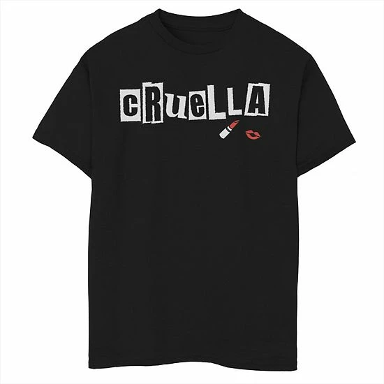 He’s sure to love the look of this Disney’s Cruella boys’ Lipstick Lips Logo Graphic Tee.