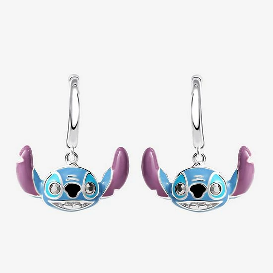 Finish off your look with a touch of playfulness in these sterling silver enameled Lilo and Stitch huggie drop earrings. ©Disney