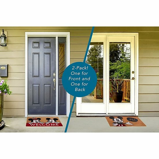 Allow Mickey to welcome your guests in style with this slip-resistant Disney’s Mickey Hi/Welcome 2-Pack Coir Mat set.
