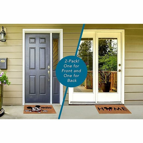 Allow Mickey to welcome your guests in style with this slip-resistant Disney’s Mickey Home/Hello 2-Pack Coir Mat set.