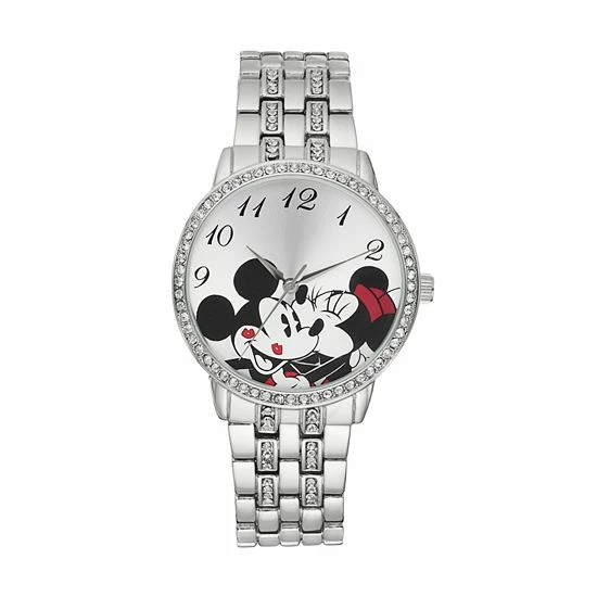 - Silver-tone sunray dial with Mickey & Minnie Mouse graphics