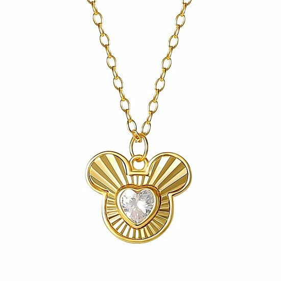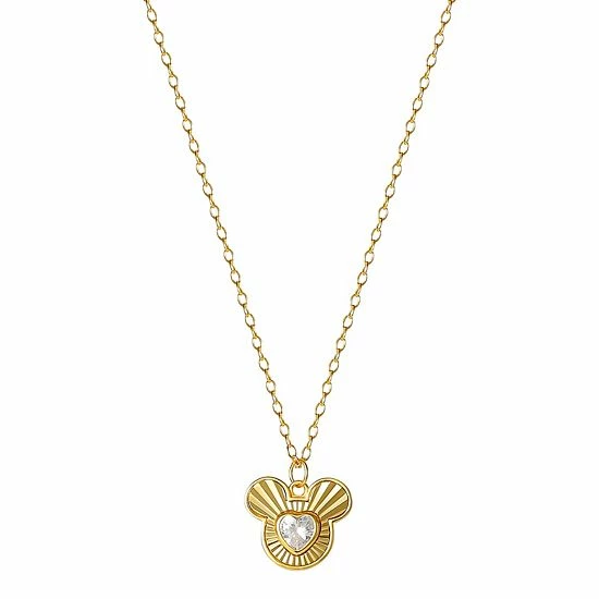 Add a touch of whimsy to your jewelry collection with this 18k gold plated cubic zirconia-studded Mickey Mouse pendant necklace. ©Disney