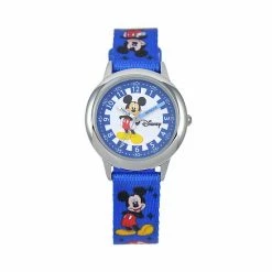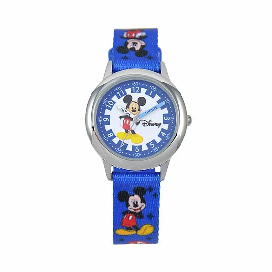 This Time Teacher watch is perfect for your little Mouseketeer. Featuring Mickey Mouse graphics, and labeled “Hour” and “Minute” hands, this stainless steel watch makes learning to tell time fun and easy. Your child is sure to love this kids’ Disney watch.