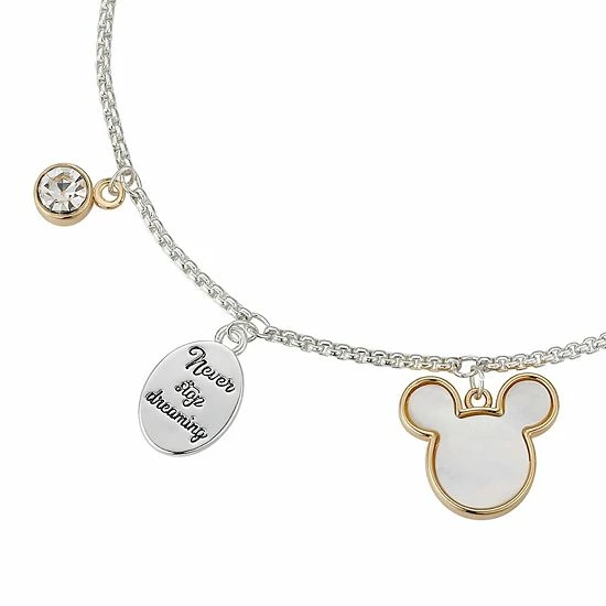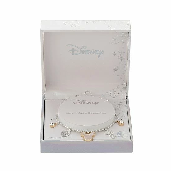 Any fan of Mickey Mouse will love the inspired style of this “Never Stop Dreaming” crystal bolo bracelet. © Disney
