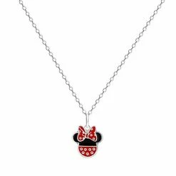 Finish off your look with a touch of playfulness with this sterling silver Disney’s Minnie Mouse enameled pendant necklace. ©Disney