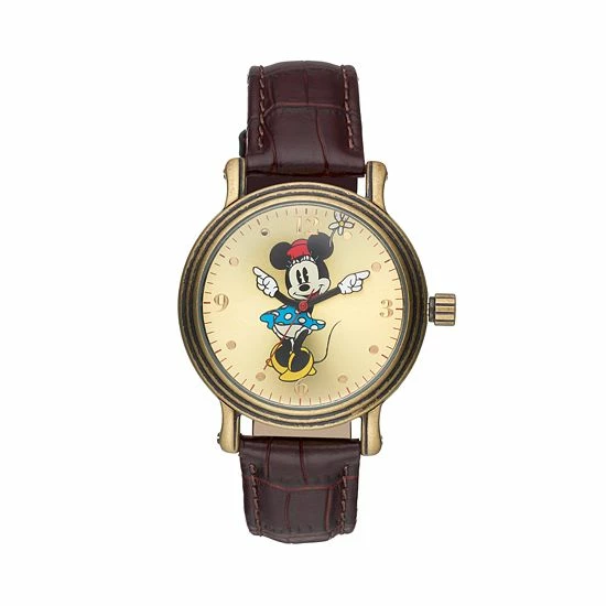 Charming Minnie Mouse hands make this women’s leather watch from Disney an adorable addition to your collection. Comes in a gift box.