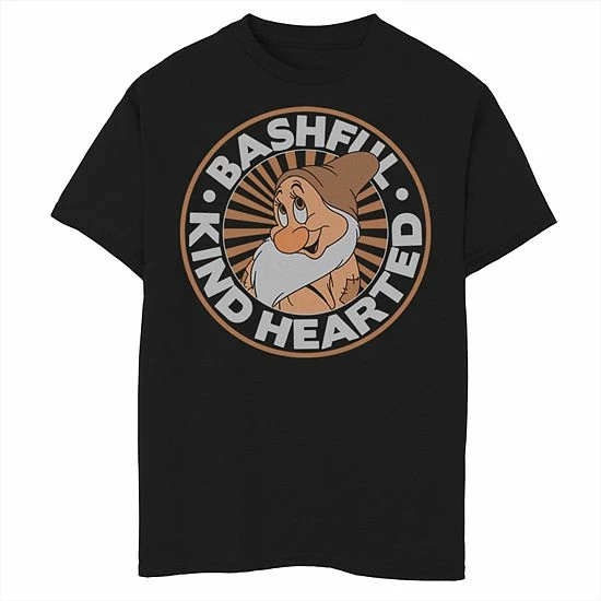He’ll love the look of this Disney’s Snow White & The Seven Drawfs boys’ Bashful Kind Hearted Graphic Tee.