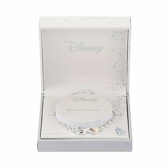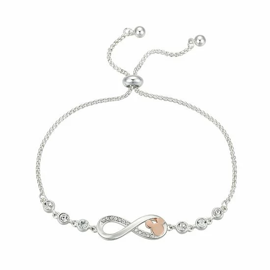 Finish off your look in style in this crystal-studded two-tone Mickey Mouse infinity charm bolo bracelet. ©Disney