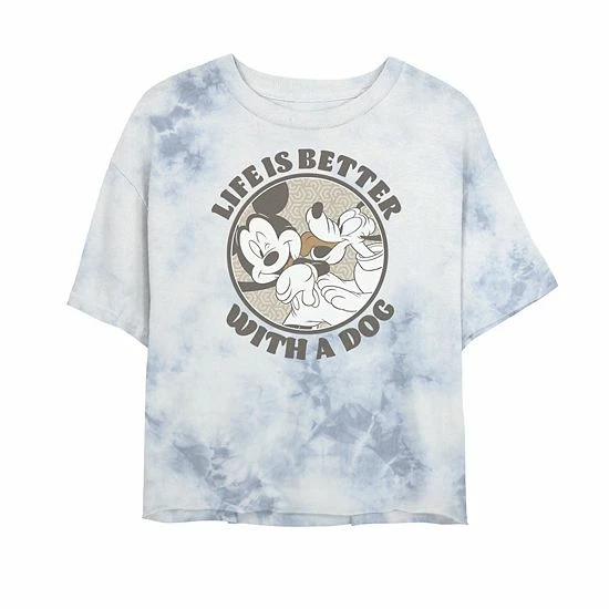 Represent your furry best friend with this juniors’ Disney Mickey And Friends Life Is Better With A Dog Bombard Wash Crop Graphic Tee.