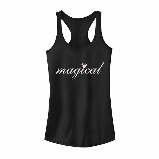 Live in your girl magic with this juniors’ Disney Mickey And Friends Minnie Magical Text Racerback Graphic Tank Top.
