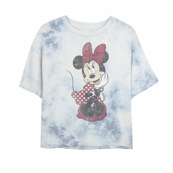 There’s nothing wrong with being shy, at least you’ll be cute wearing this juniors’ Disney Mickey And Friends Minnie Mouse Shy Vintage Bombard Wash Crop Graphic Tee.