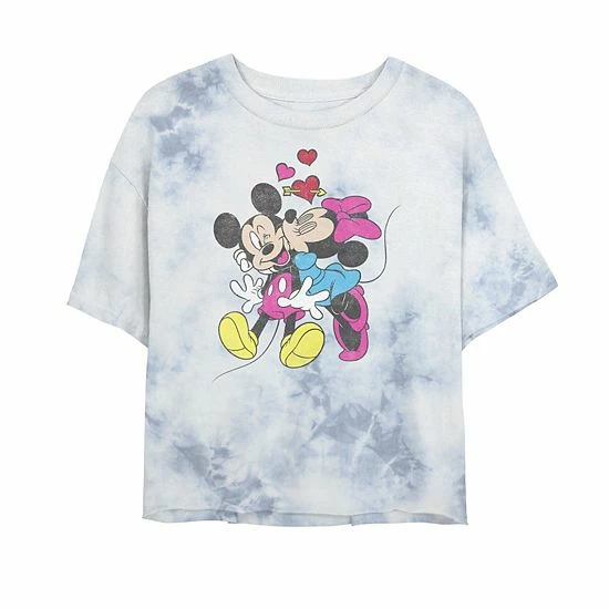 Love is in the air with this juniors’ Disney Mickey & Friends Valentine Couple Bombard Wash Crop Graphic Tee.