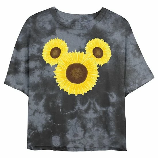 Juniors’ Disney Mickey Mouse & Friends Mickey Sunflower Ears Wash Crop Tee
