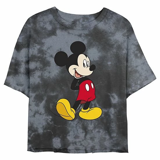 Juniors’ Disney Mickey Mouse Smiling Pose Wash Crop Tee