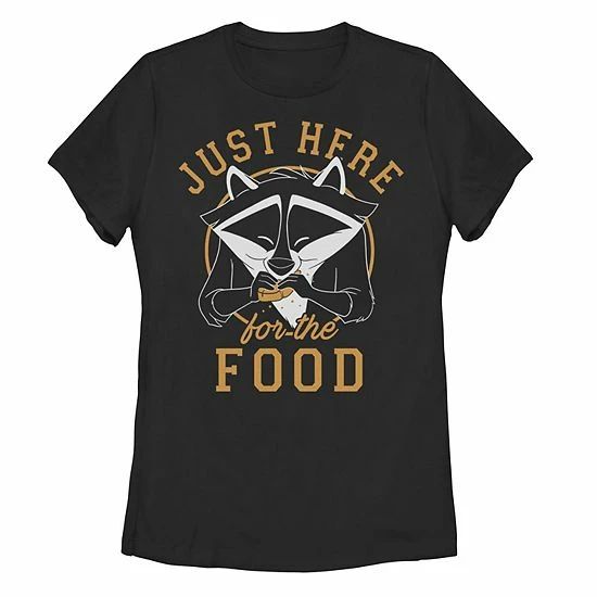 This adorable Juniors’ Disney’s Pocahontas Meeko “Just Here For The Food” Graphic Tee is perfect for your hungry little Pocahontas fan. In black. ©Disney