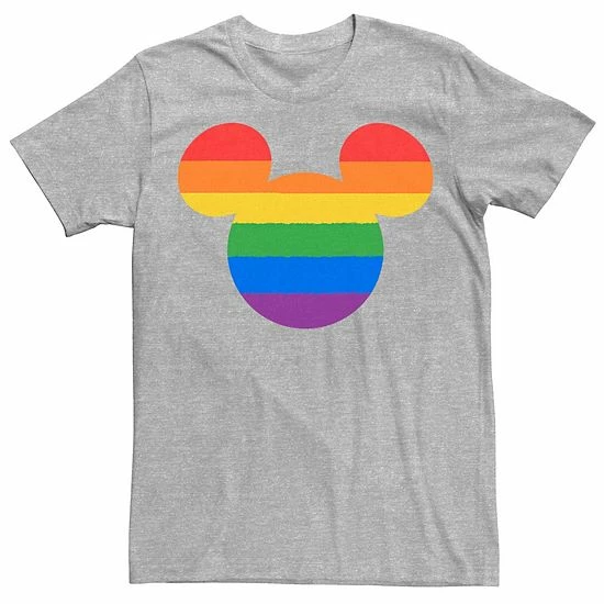 You’ll be proud to wear this men’s Disney Mickey Mouse rainbow tee. © Disney