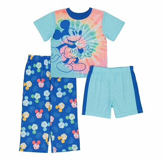 He’ll look like the coolest little guy in this three-piece Mickey Mouse tie dye pajama set. ©Disney